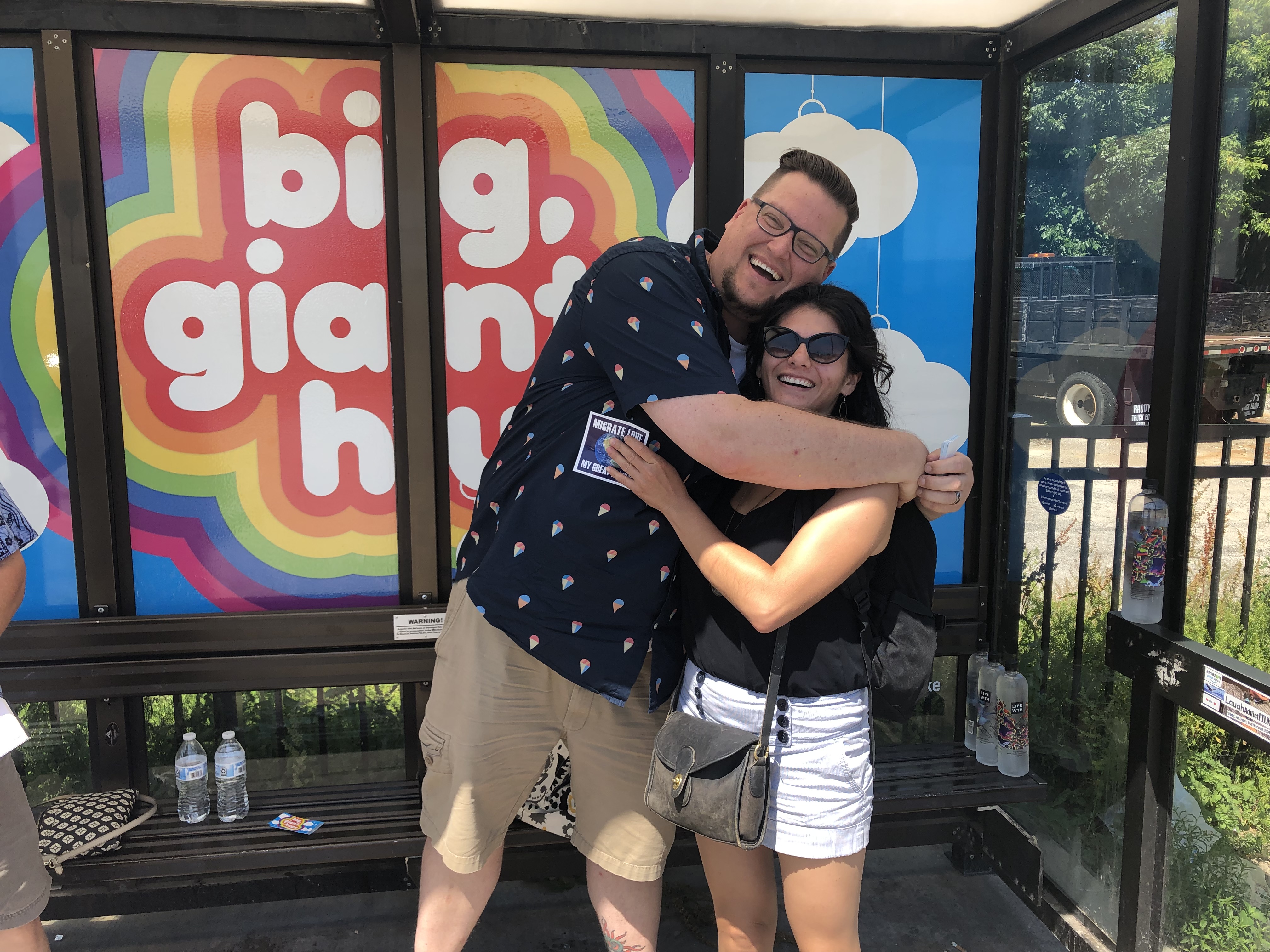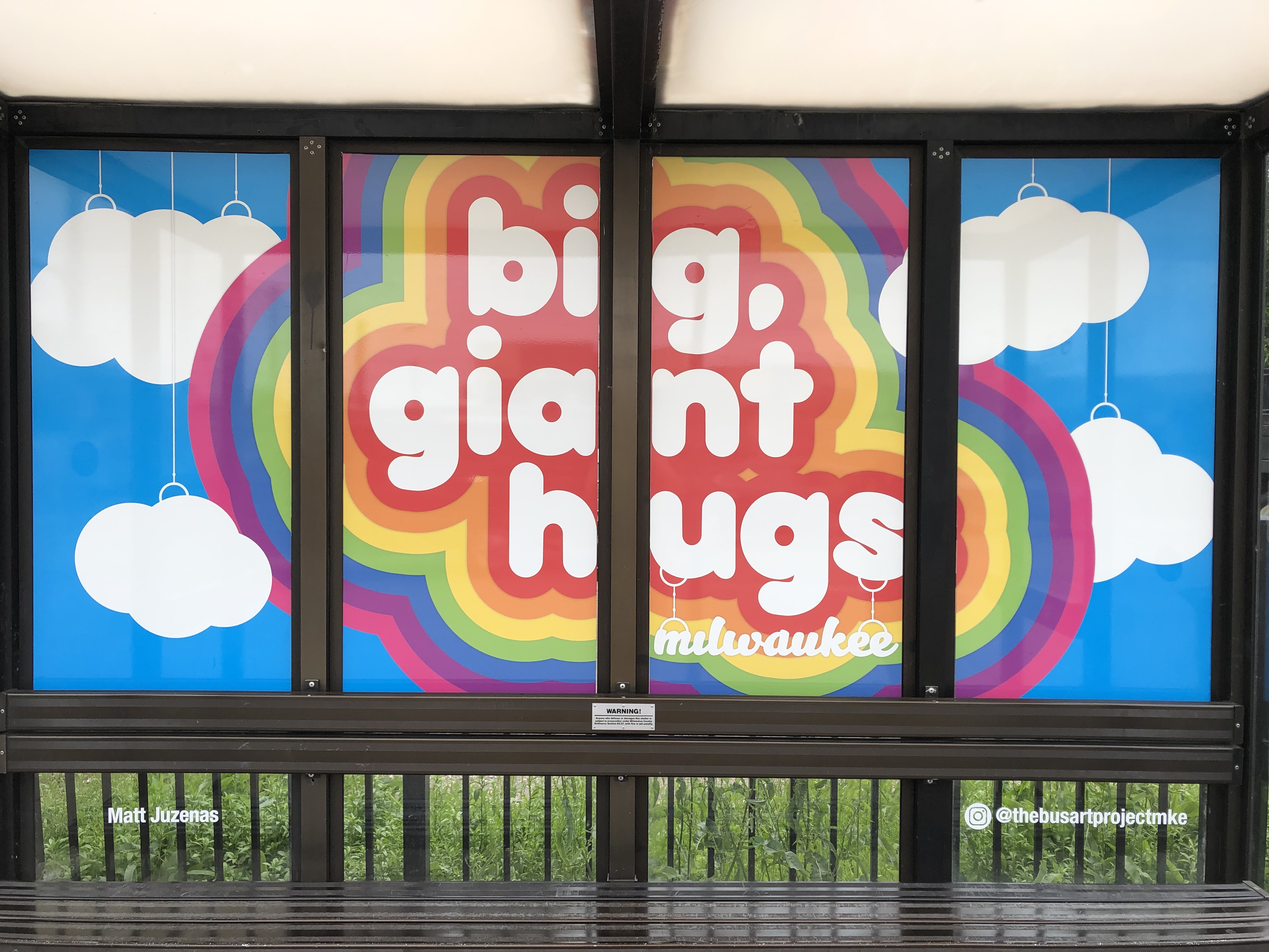 My nieces and nephews called me the BFG, the big, friendly giant, and so that just always stuck. Then many years ago I just started signing my posts “Big, Giant Hugs” and it was a play on giving giant hugs from a giant and they’re big and all of that. I struggled with mental health for a long time of clinical depression and anxiety and with learning how to live and strive with that and embracing it versus fighting that, I’ve just embraced this mindset of always trying to put positivity out into the world. Always assume best intent, always give that person the benefit of the doubt and try to live life as fully and as positively as possible. So when this came about I thought, what a cool opportunity to put that message out in the city. It’s just one more way that in a small way, in a simple way to give people joy. I want to make people happy when they see something. It’s funny I actually wrote a blog post on my site about the piece because ironically, as an out, gay married man I never thought about Pride when I was creating that piece. It was just about simply spreading joy.